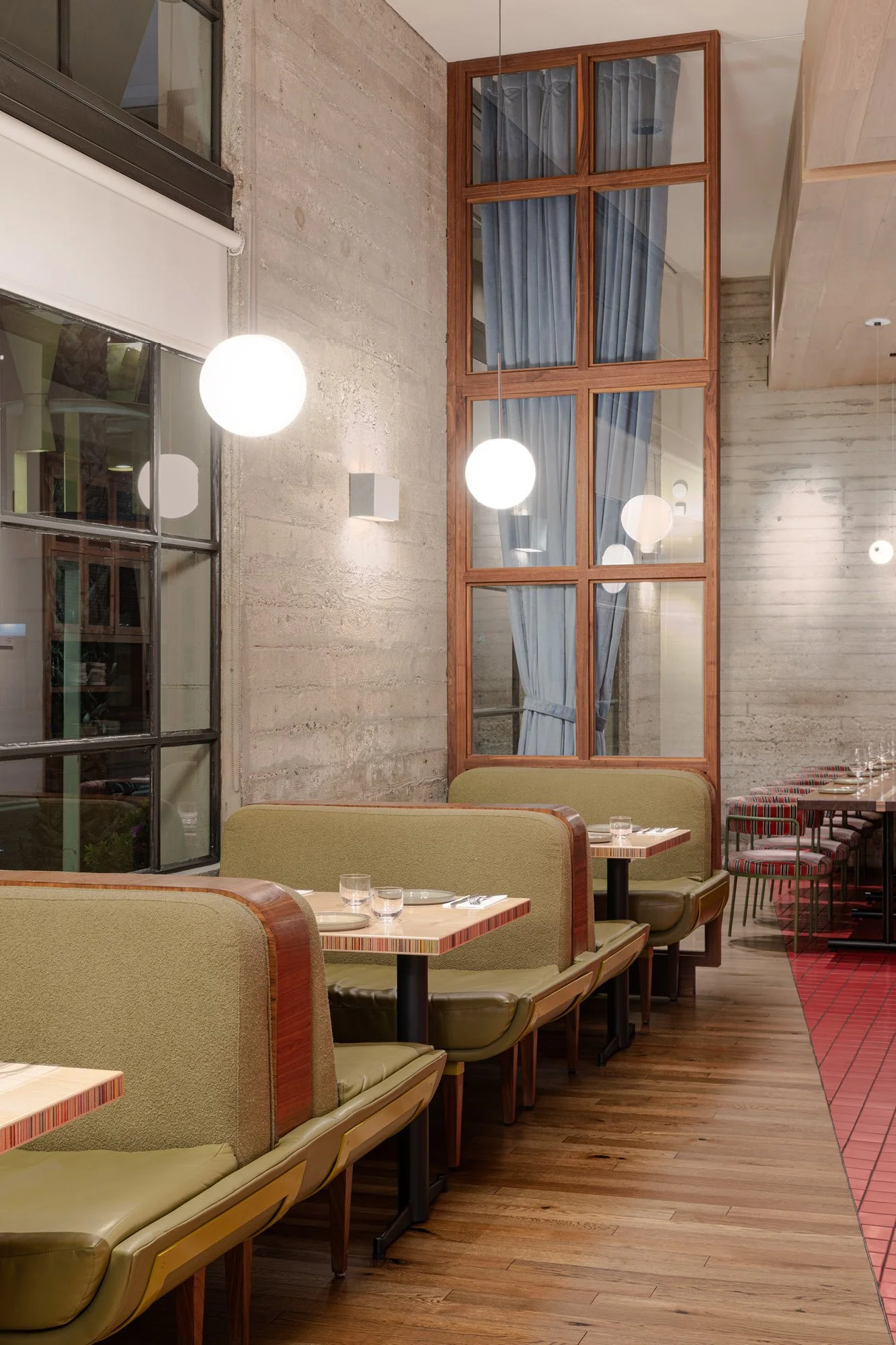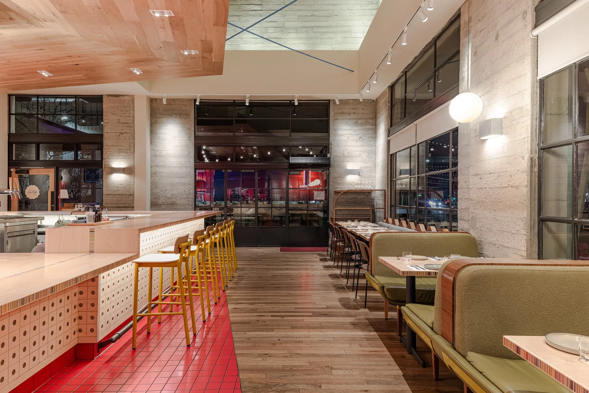 Working again with Studio UNLTD, the team created more than a restaurant; a destination was created that embodies its name. The visual language of the space invites participation and pleasure, matching the spirit of the menu. Lustig demonstrates our belief that architecture should foster joy and connection—creating places where the experience of being together is as memorable as the meal itself. This is placemaking at its most essential: designing spaces that naturally bring people together.
