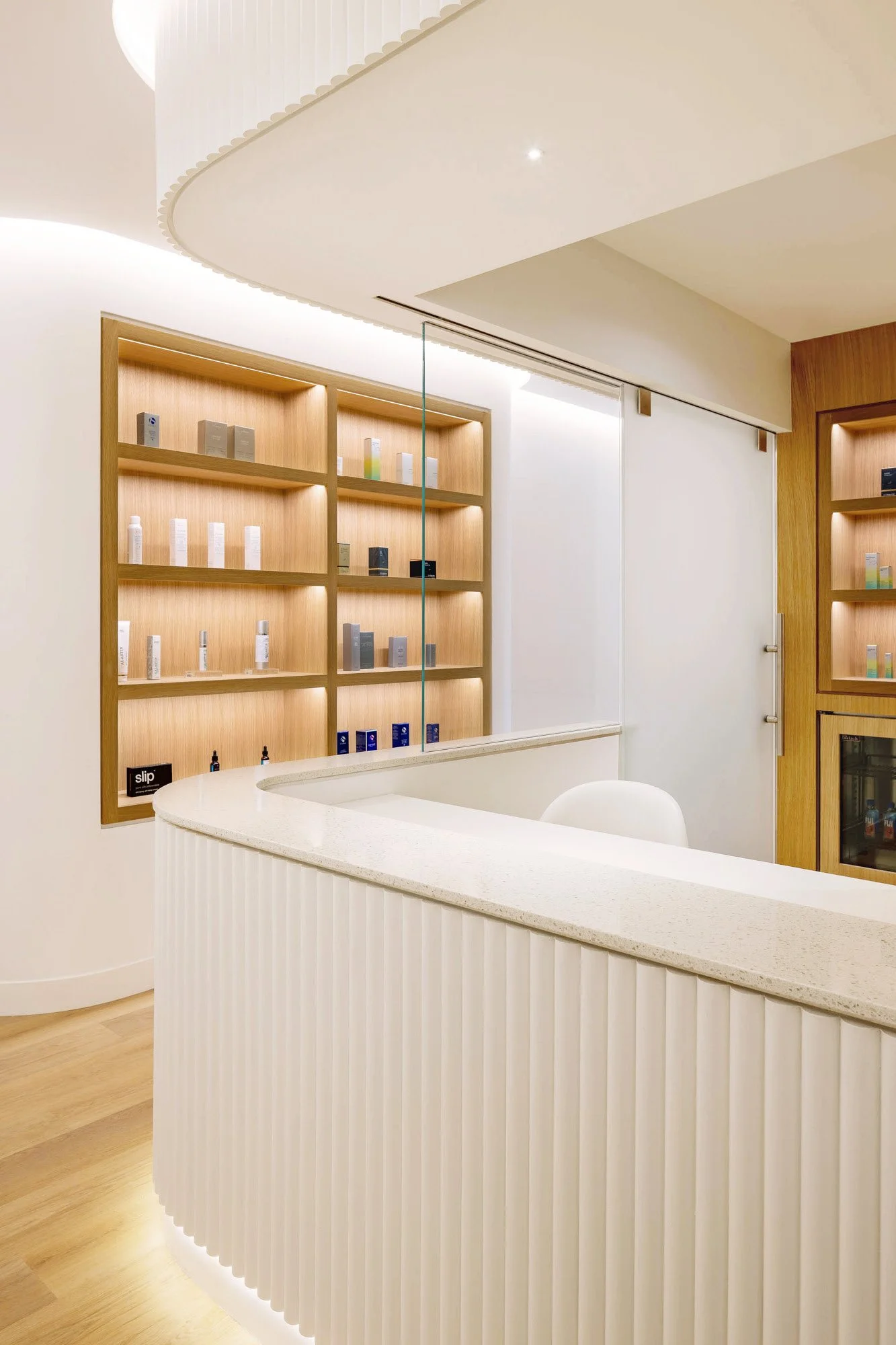 Our design intent was architecture as atmosphere, weaving modern luxury with tranquility. The space conveys elevated care while maintaining the professional sophistication essential to the institute's clientele. It's a place designed for transformation, where every surface and detail supports a sense of harmony and renewal.