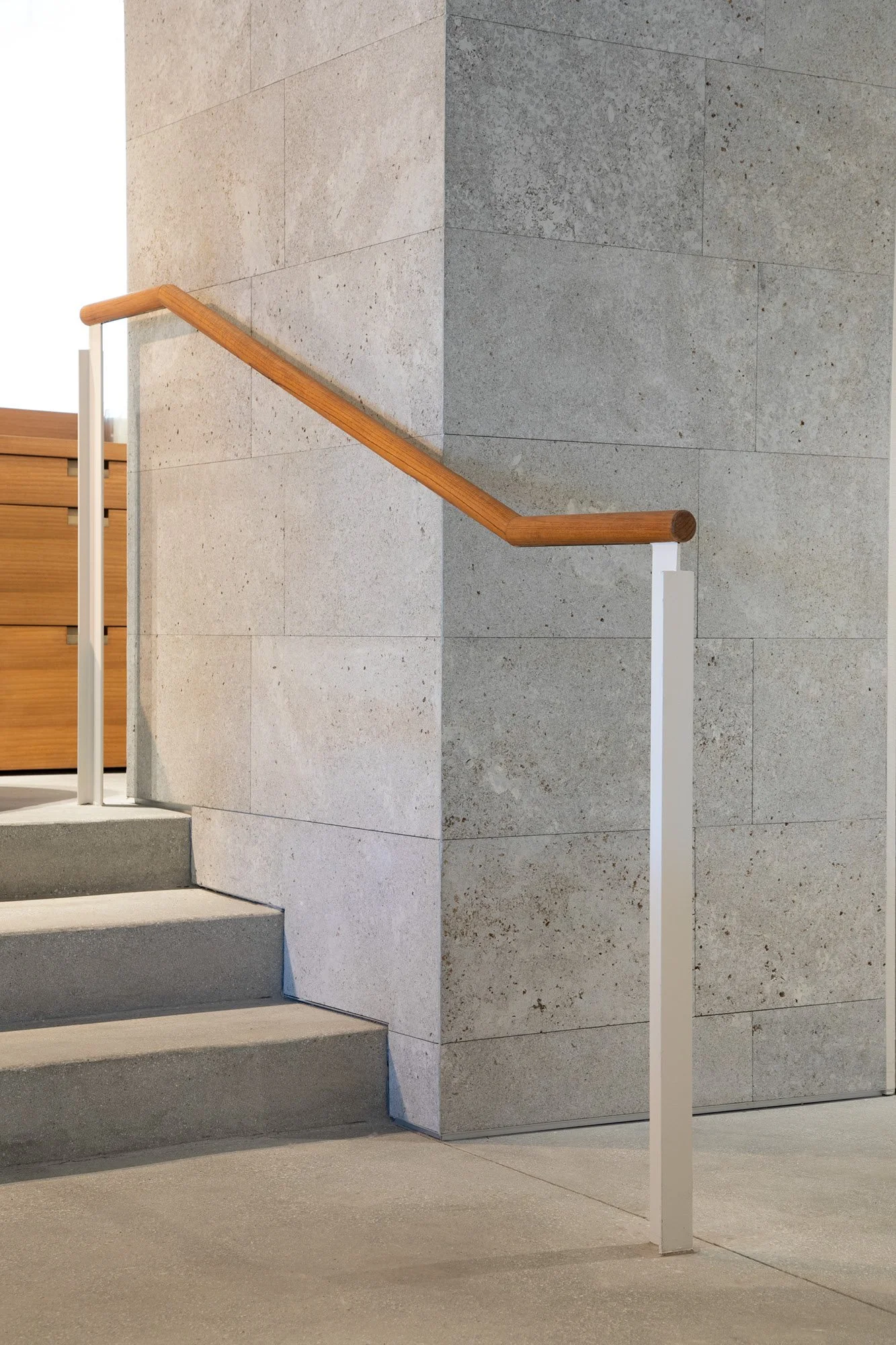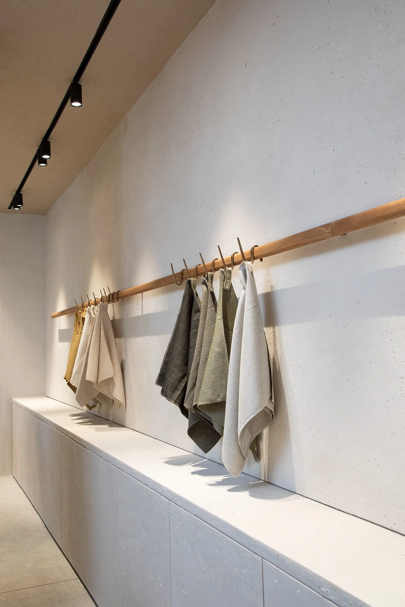 The resulting 5,000 square-foot showroom presents an immersive retail experience reminiscent of Mid Century design icons Frank Lloyd Wright and Richard Neutra. Echoing the brand's timeless and discreet luxury ethos, thoughtfully selected materials and exquisitely detailed surfaces create a calming, sensory experience. A neutral color palette of greys and creams, tactile and textured surfaces, and emphasis on natural materials, including Muschelkalk stone tile, brushed Portofino countertops, hand-applied stucco embedded with crushed seashells, custom plantation grown and certified sustainable forest managed teak furnishings, oil rubbed bronze fixtures, and pure hemp ceiling coverings complete the effect. Low VOC finishes paired with low embodied-carbon materials with long life spans improved the overall quality of the indoor environment. The abundant use of wood and natural material finishes provided a calming effect and offer a sense of well-being.